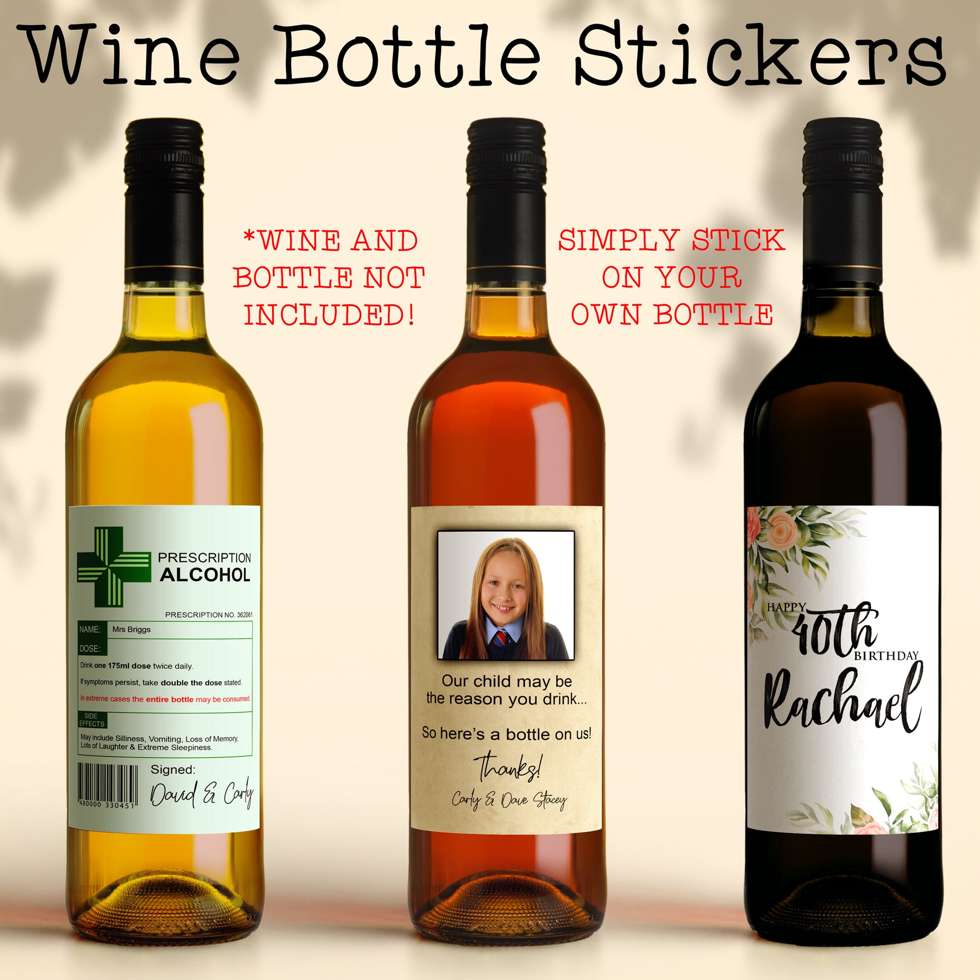 Perfect for gifts - Teachers, Birthdays, Anniversaries, New Homes - or just to have a few personalised bottles on the table at Christmas.