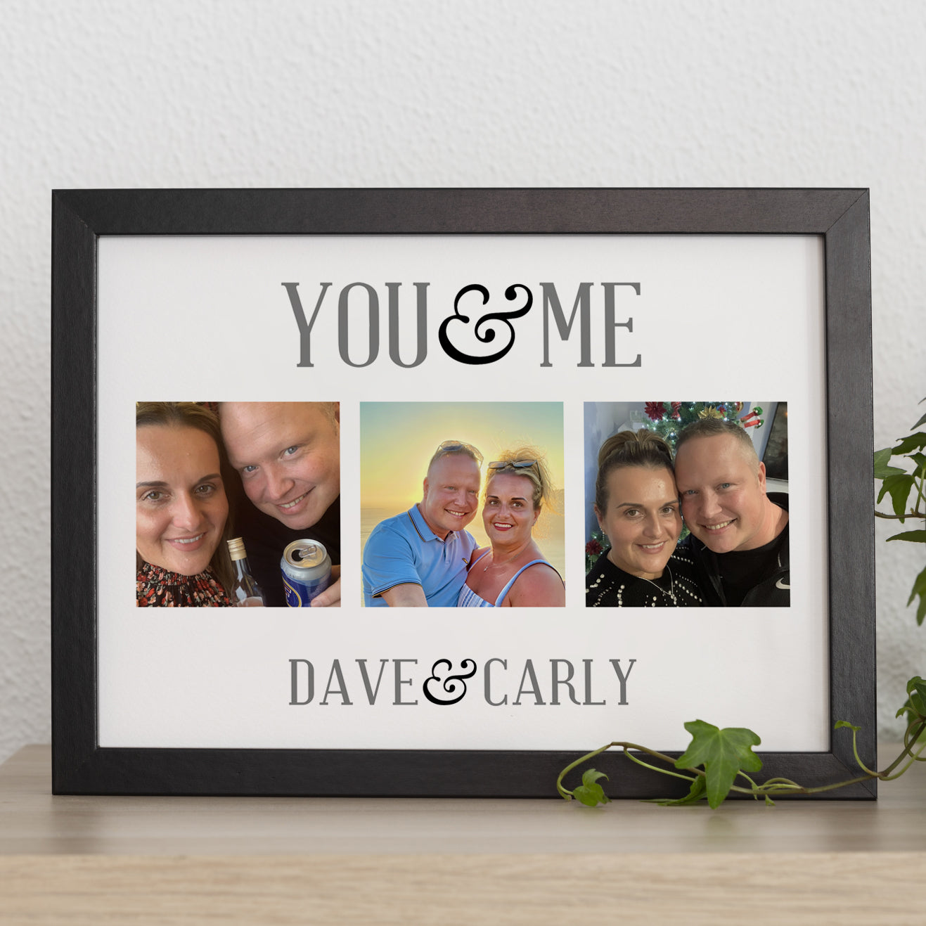 A print using any 3 suitable photos (colour or plack and white - however you supply them) and the names of the couple.