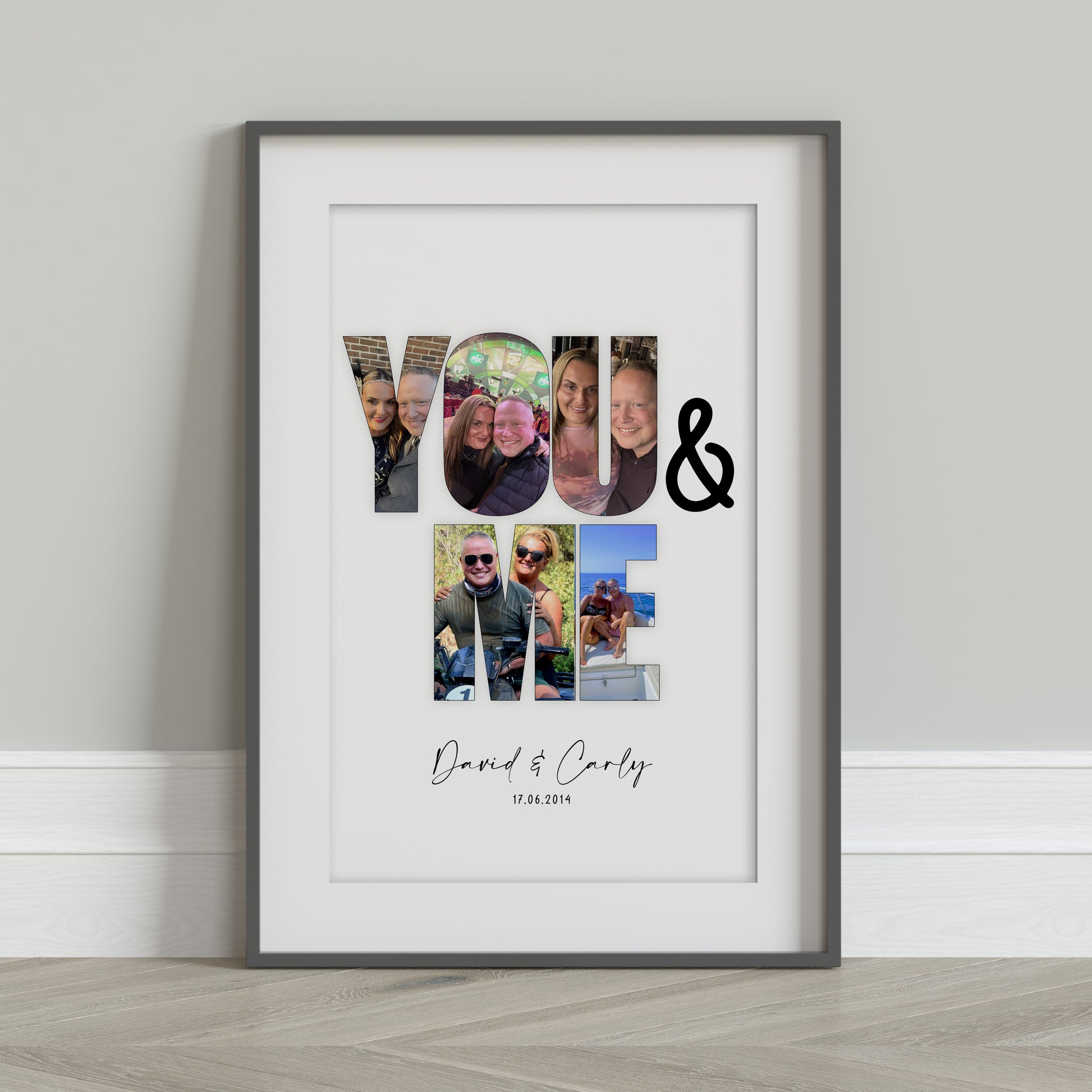 A print using any 5 suitable photos (colour or plack and white - however you supply them) and the names of the couple and a date.
